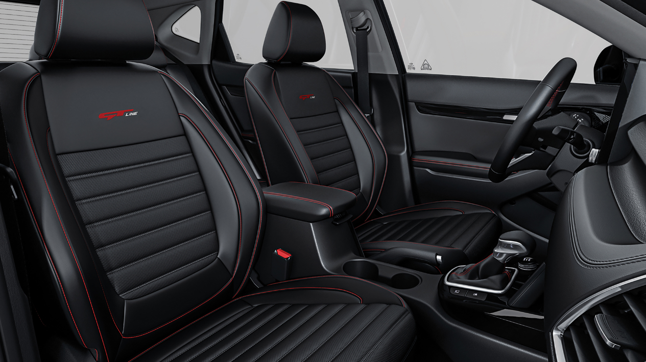 Bên trong khoang lái, nội thất phiên bản cao cấp thể hiện sự khác biệt với tone màu đen viền chỉ đỏ tinh tế và nổi bật, logo GT-Line ấn tượng ở các vị trí vô lăng, ghế và cần số. Vô lăng trên phiên bản này được thêu viền chỉ đỏ, bàn đạp được ốp kim loại. Đặc biệt, Kia Seltos 1.4T GT-Line là phiên bản duy nhất được trang bị rèm che nắng phía sau mang đến sự thoải mái cho hành khách ở các vị trí và tạo sự khác biệt so với các phiên bản còn lại cũng như những đối thủ trong phân khúc.