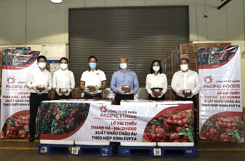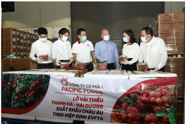 Chiều ngày 7/6/2021, tại sân bay quốc tế Nội Bài, Công ty Cổ phần Pacific Foods đã chính thức xuất lô vải thiều Thanh Hà, Hải Dương đầu tiên đi châu Âu theo Hiệp định Thương mại tự do giữa Việt Nam và EU (EVFTA).