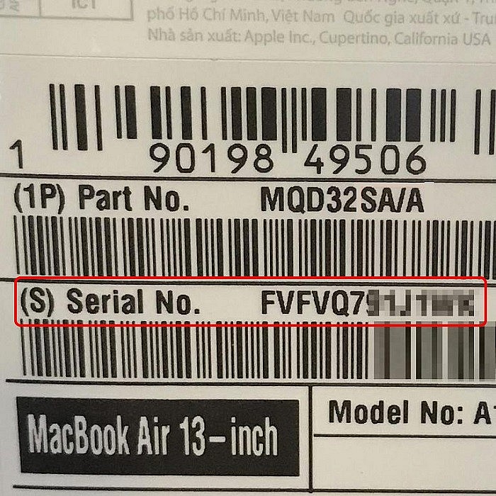 Khi bạn mua MacBook mới sẽ có hộp đựng, vậy nên bạn cũng có thể tìm kiếm số Seri trên hộp này mà chưa cần mở máy ra.