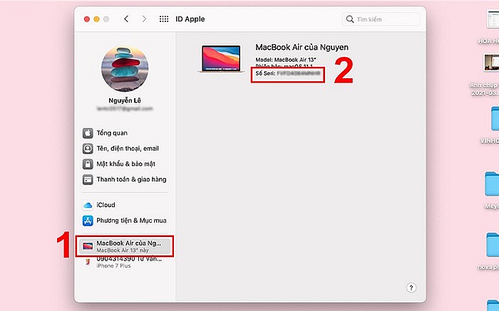 Sau đó có một bảng thông tin hiện ra bạn lựa chọn mục chứa tên máy MacBook, bảng tin sẽ hiện ra, trong đó có chứa số Seri bạn cần tìm.