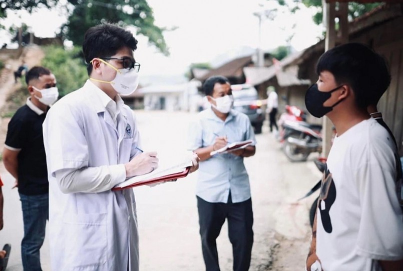 | Bác sĩ lấy mẫu, phát thuốc phòng bệnh bạch hầu cho người dân xã Phà Đánh, huyện Kỳ Sơn, tỉnh Nghệ An - Ảnh: VĂN LANG |
