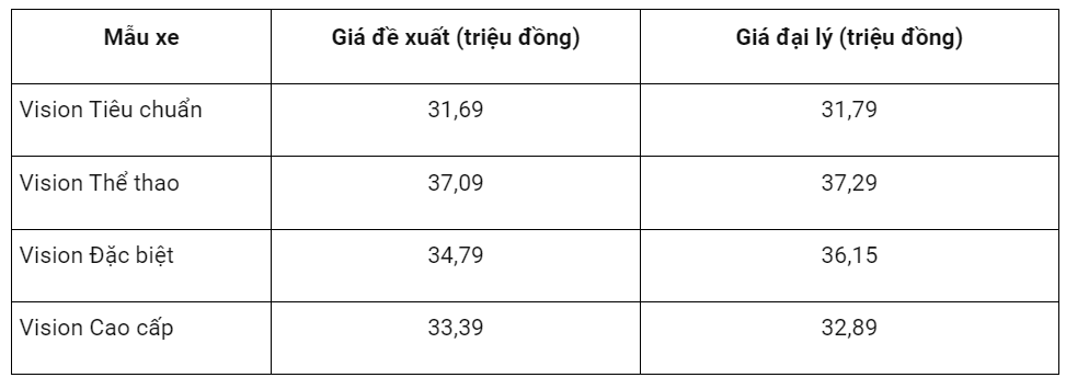 Theo khảo sát tại một số đại lý Honda, mẫu xe Honda Vision đang được chào bán với mức giá khá cạnh tranh: