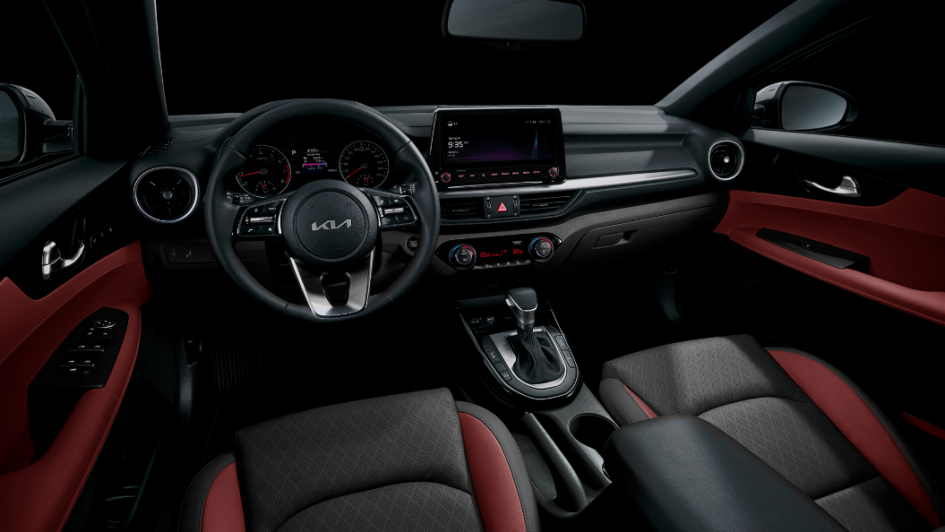 Không gian nội thất của Kia K3 cũng được đánh giá cao về tính thẩm mỹ. Khoang lái nổi bật với màn hình thông tin – giải trí kích cỡ đến 10,25 inch. Vô-lăng D-cut thể thao nổi bật với logo mới, thiết kế thể thao, tích hợp các nút điều khiển. Ghế lái chỉnh điện, tích hợp nhớ ghế 2 vị trí, cùng các tính năng như sưởi, làm mát. Những tính năng này vượt trội so với các đối thủ trong phân khúc. K3 trang bị điều hoà 2 vùng độc lập, có cửa gió cho hàng ghế sau. Xe có thể khởi động từ xa, có cốp mở điện.