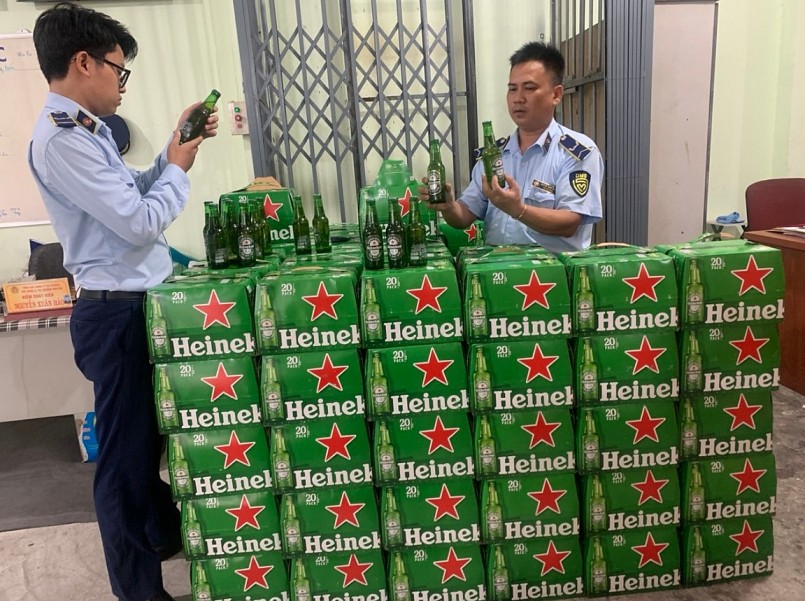 Kết quả khám phương tiện phát hiện trên xe vận chuyển 2.400 chai bia hiệu Heineken 250ml, hạn sử dụng: 02/2024, nhãn bằng tiếng nước ngoài nhưng không có nhãn phụ bằng tiếng Việt Nam.