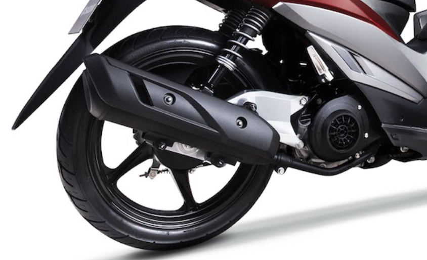 Kiểu đèn pha lớn này chính là đặc điểm thừa hưởng từ Suzuki Burgman.Trong khi đó phần đuôi xe có thiết kế thon gọn, thanh thoát nhưng không thiếu tính thể thao nhờ đuôi xe hơi vểnh lên. Cụm đèn hậu có thiết kế sắc sảo với đèn phanh lõm xuống ở giữa, tạo cảm giác như đèn hậu được chia đôi.