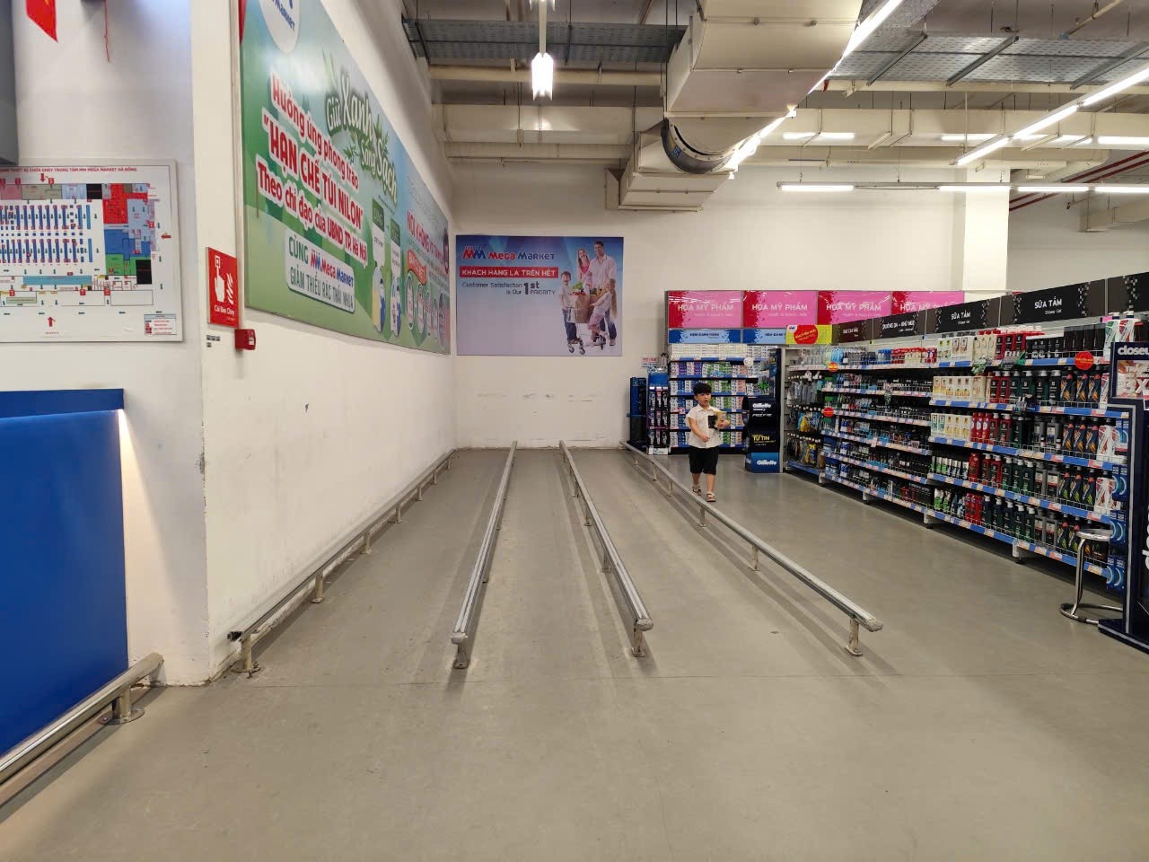 Càng về tối lượng người tập trung càng đông, lối vào gần như kín người. Vị trí để xe đẩy đồ cho khách hàng cũng trống trơn.