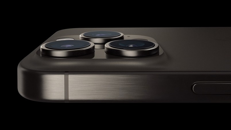 Mặt lưng của iPhone 15 Pro Max có thiết kế không đổi. Camera chính giữ nguyên 48MP, hỗ trợ chống rung đa trục, quay phim 4K@60fps. Cảm biến telephoto 12MP với khả năng zoom quang 5x và camera siêu rộng 12MP.