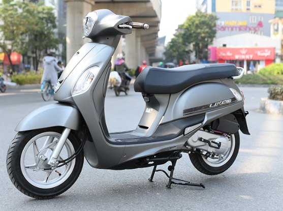 Tiếp theo là mẫu xe tay ga 50cc đến từ nhà Kymco. Mẫu xe Kymco Like 50cc này thu hút người nhìn bởi sự cao cấp và thanh lịch trong thiết kế. Mặt nạ xe thiết kế vuông nhưng lại được bo tròn góc cạnh tạo nên những đường gân cong mềm mại. Khe hút gió hình chữ V cách điệu nổi bật được ốp viền mạ crom sáng bóng.