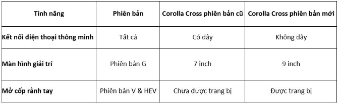| Thông tin chi tiết về những nâng cấp trên các phiên bản của Corolla Cross 2023: |