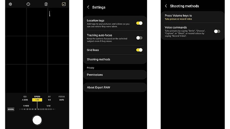 Bản thân ứng dụng Expert RAW không có nhiều cài đặt – và trái ngược với ứng dụng máy ảnh Samsung tiêu chuẩn, nó luôn chụp RAW + JPEG cùng một lúc.