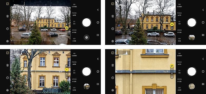 Điều đầu tiên bạn sẽ nhận thấy là ứng dụng Expert RAW cho phép bạn chọn tất cả các độ dài tiêu cự có sẵn. Ứng dụng máy ảnh gốc của Samsung chỉ cho phép bạn chọn ống kính góc siêu rộng và góc rộng trong Chế độ chuyên nghiệp.