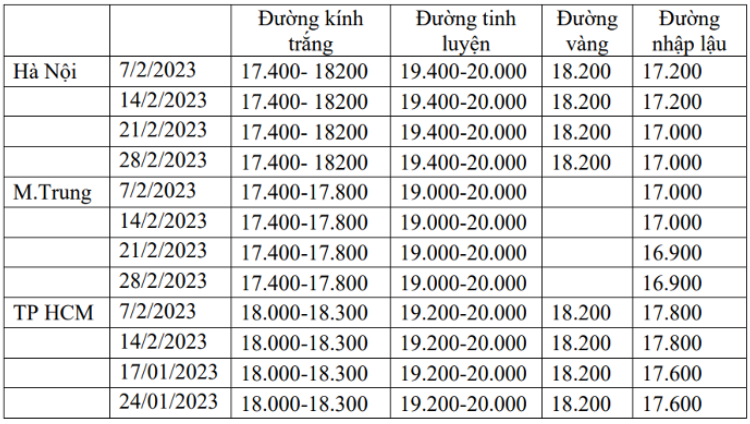 Giá đường sản xuất từ mía trong nước tùy phẩm cấp đường (chất lượng và cỡ hạt) và đường nhập lậu (giá có VAT, đ/kg) dao động ở mức như sau: