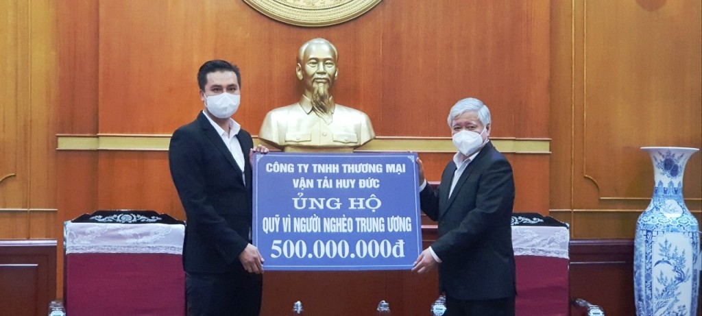 Cùng tham gia ủng hộ Quỹ Vì người nghèo Trung ương năm 2021 đợt này, đại diện của Công ty TNHH Thương mại Vận tải Huy Đức, ông Võ Ngọc Tài (con của bà Nguyễn Nam Phương) cũng ủng hộ số tiền 500 triệu đồng.