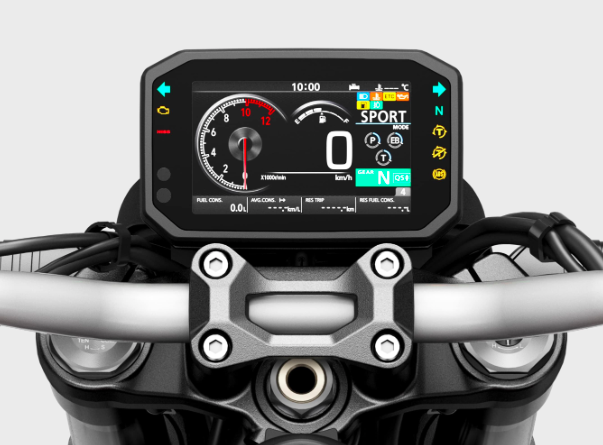 Màn hình màu TFT 5 inch nổi bật với 4 chế độ hiển thị tốc độ và vòng tua động cơ một cách trực quan, sống động và dễ quan sát, hỗ trợ cung cấp thông tin tối ưu cho người lái, kết hợp với cụm nút bấm điều khiển được tích hợp ở tay lái bên trái giúp dễ dàng điều hướng giữa các chức năng khác nhau.