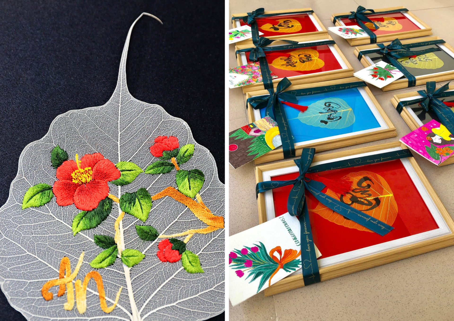 Sự kết hợp của lá bồ đề cùng nét chữ thư pháp tạo lên những bức tranh chữ, tranh thêu độc đáo, là món quà ý nghĩa để thể hiện lòng kính trọng, tri ân và tôn vinh người Thầy.