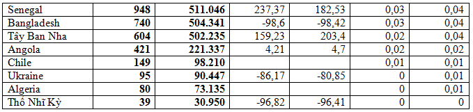 (Tính toán từ số liệu công bố ngày 11/6/2022 của TCHQ)
