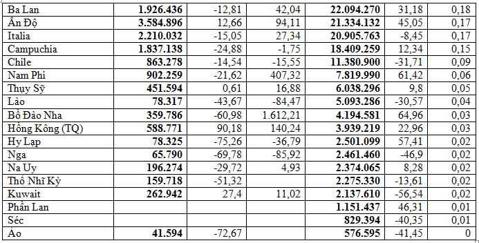 (Tính toán từ số liệu công bố tháng 10/2022 của TCHQ)