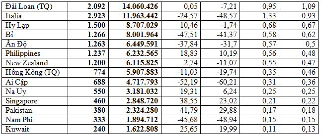 (Tính toán từ số liệu công bố ngày 15/6/2023 của TCHQ)
