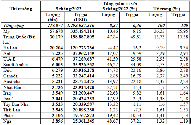 Xuất khẩu hạt điều 5 tháng năm 2023