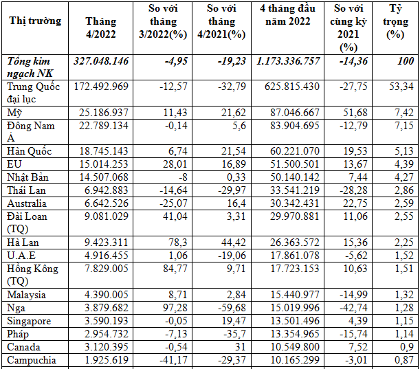 (Tính toán từ số liệu công bố ngày 12/5/2022 của TCHQ)