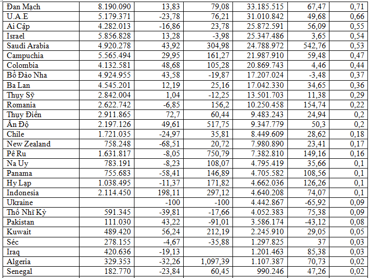 (Tính toán theo số liệu công bố ngày 11/6/2022 của TCHQ)