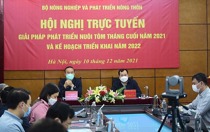 | Hội nghị trực tuyến "Giải pháp phát triển nuôi tôm tháng cuối năm 2021 và kế hoạch triển khai năm 2022. |
