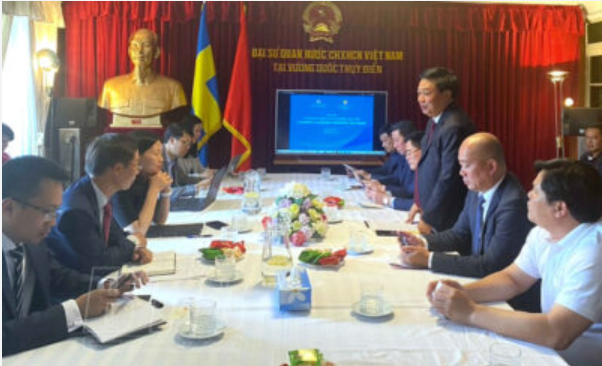 Trong khuôn khổ các hoạt động tại Thụy Điển, ngày 9/8/2022, Đoàn đã tham dự Hội thảo cơ hội kinh doanh với thị trường Thuỵ Điển tại trụ sở Đại sứ quán Việt Nam tại Thuỵ Điển. Tại hội thảo, Đại sứ Phan Đăng Đương cho biết, quan hệ hai nước đã có bước tiến triển mới sau chuyến các chuyến thăm cấp cao của cả hai nước.